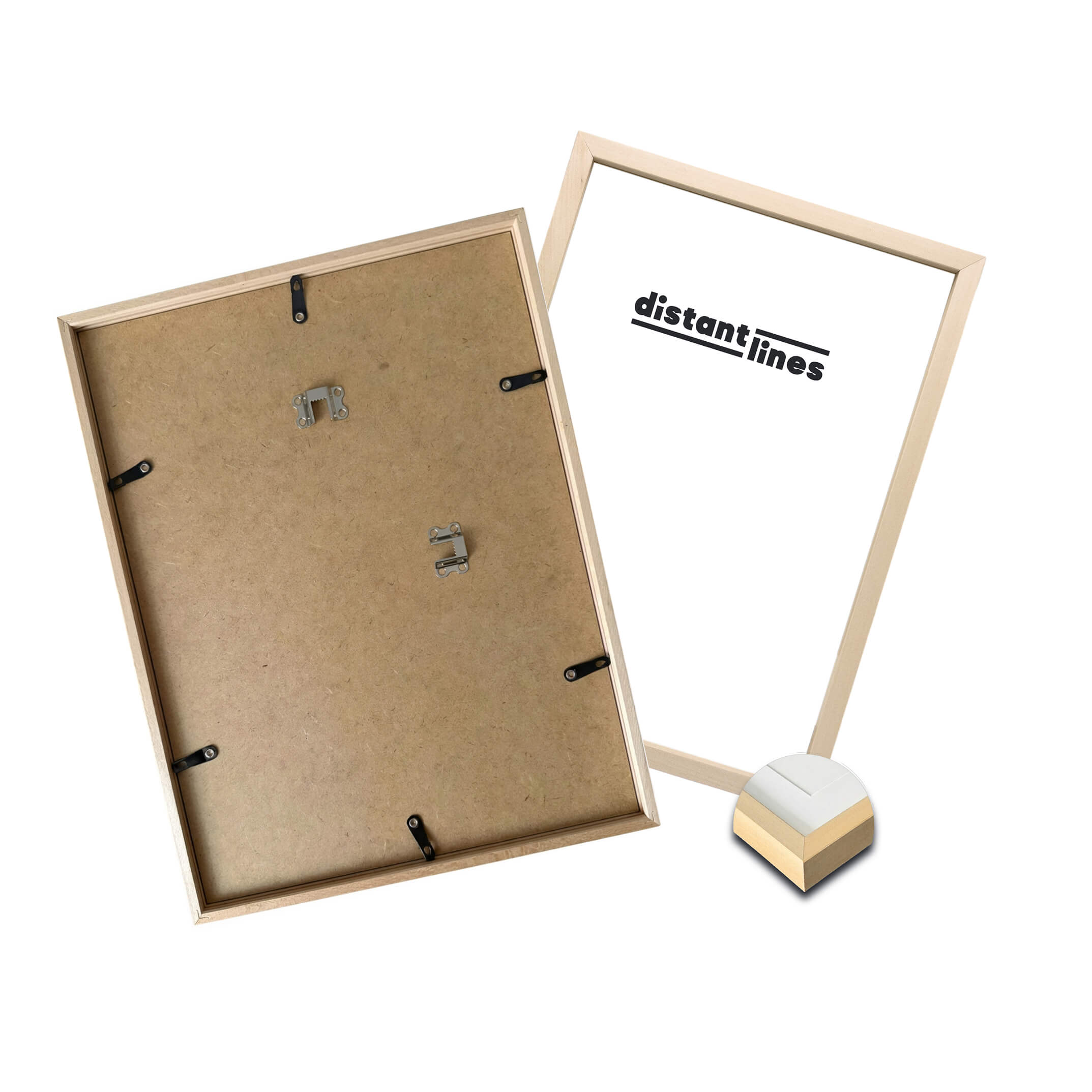 Schlankes Design aus massivem Holz. Professionell gerahmt und fertig für die Wand.